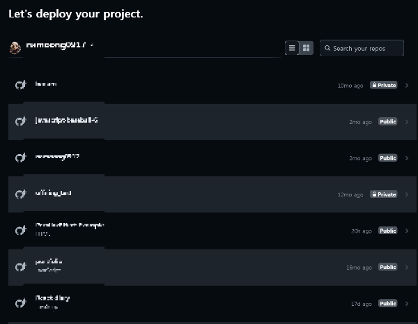 2. 배포할 github 프로젝트를 불러오기