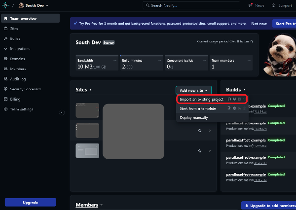Netlify에 로그인한 후